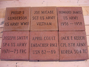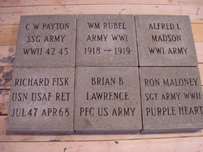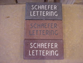 There are two sizes and types of pavers that are most commonly used; 4 by 8 inch and 8 by 8 inch cement. The 8 by 8 inch cement pavers come in two colors; gray or red. Using a 1 inch letter on these two sizes allows up to 13 characters per line including spaces. However, we can customize your project with any size paver you prefer, and increase the amount of characters by reducing the size of letter slightly.